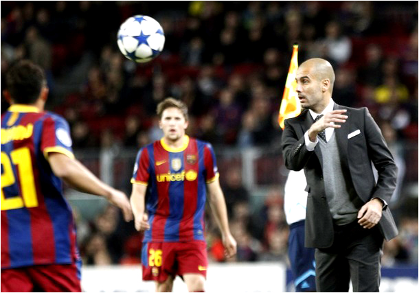 Замены, которые вынужден был провести Пеп Гвардиола из-за травм двух игроков основы (Жеффрена на 11-й минуте и Бояна на 33-й) привели к тому, что сине-гранатовые к середине первого тайма перестроились на привычную для себя схему: 4-3-3. Бускетс занял позицию радом с Маскерано в опорной зоне, а Тиаго стал играть на позиции атакующего полузащитника, но его удары издали особой опасности не несли.