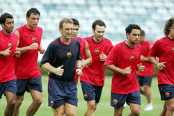 Вторая тренировочная сессия под руководством Франка Райкаарда выдалась очень напряженной. Игроки тренировались, несмотря на ужасную жару.