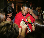 Итальянские средства массовой информации распространили слухи о том, что "Милан" готов приобрести игрока испанской "Барселоны" и сборной Бразилии Роналдинью за 100 миллионов евро, однако сам бразилец на последней тренировке категорически опроверг появившиеся слухи: "Сейчас я думаю только о "Барсе" и стараюсь не слушать, что говорят обо мне. Я сосредоточен на тренировках и хочу вернуть свою оптимальную форму как можно скорее". Роналдинью присоединился к своим партнерам во вторник и не собирается покидать свою команду.
