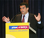 Сегодня утром Жоан Лапорта представил свою кандидатуру на пост президента клуба. Своей главной целью Лапорта назвал последовательность в действиях, другими словами Лапорта и дальше собирается поддерживать два главных слагаемых успеха "Барселоны" - спортивную и финансовую область.