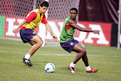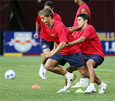 Карлес Пуйоль пропускал последнюю тренировку в связи с вызовом в сборную Испании. Каталонец, выбранный Луисом Арагонесом в сборную Испании на товарищеский матч с Исландией, вероятно, пропустит и последний матч команды в США в рамках турне 2006 года.