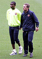 Самюель Это’о тренировался в одиночку на "Камп-Ноу" сегодняшним утром, совершая короткие пробежки и делая физические упражнения под надзором тренера Альберта Рока.