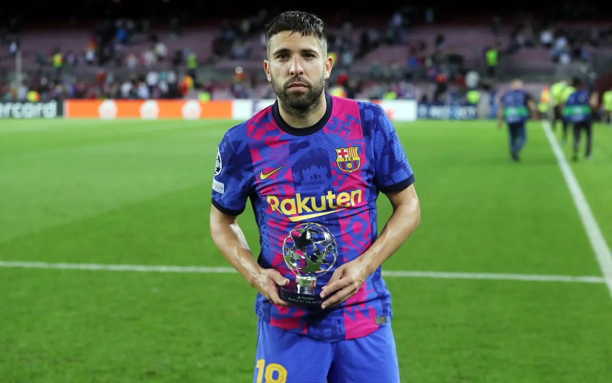 Защитник "Барселоны" Жорди Альба признан лучшим игроком матча 3-го тура Лиги чемпионов против "Динамо" (1:0).