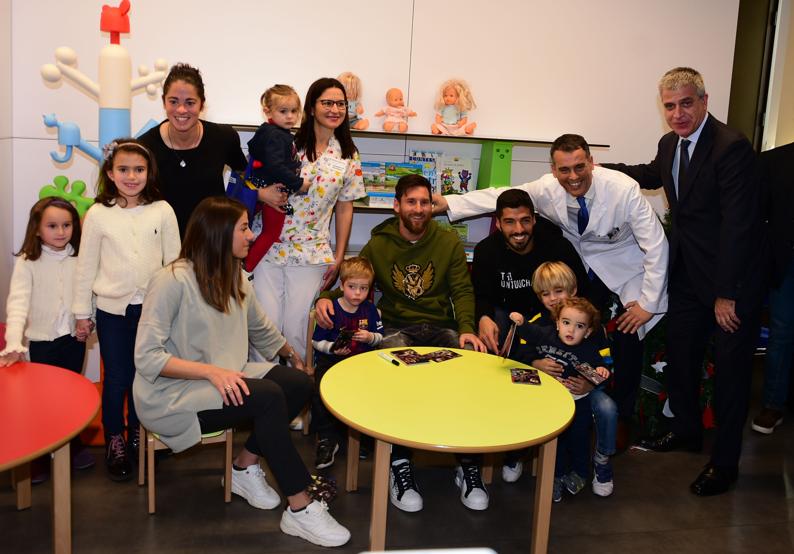 Лидеры испанской "Барселоны" Лионель Месси и Луис Суарес посетили детскую больницу столицы Каталонии